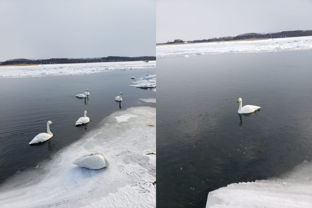 もっと大きいのは大分沖に出て行ってしまっているようで、流氷も白鳥も